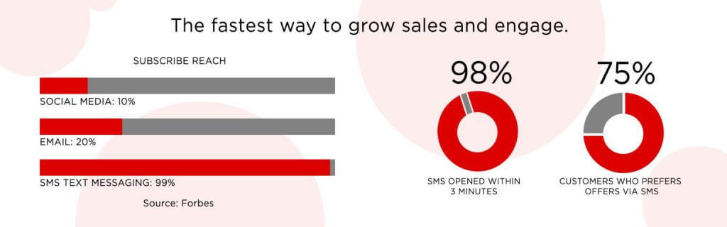 98% of Text messages are opened within 3 minutes and you can reach a customer for a few cents per campaign